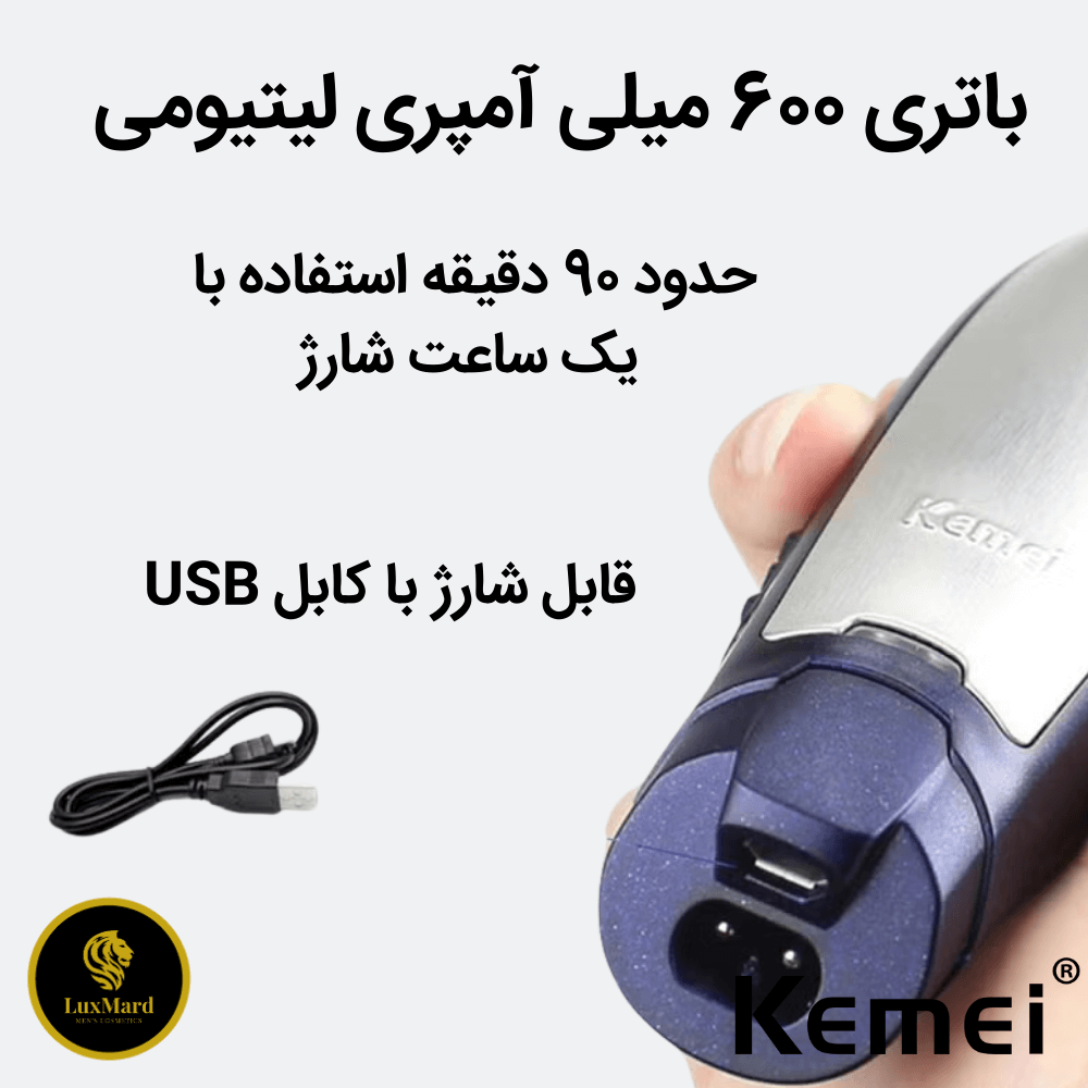 1 ماشین اصلاح + 3 شانه ماشین اصلاح با سایز متفاوت + 1 گارد محافظ تیغه + 1 کابل شارژ + 1 روغن ماشین اصلاح + 1 فرچه ماشین اصلاح